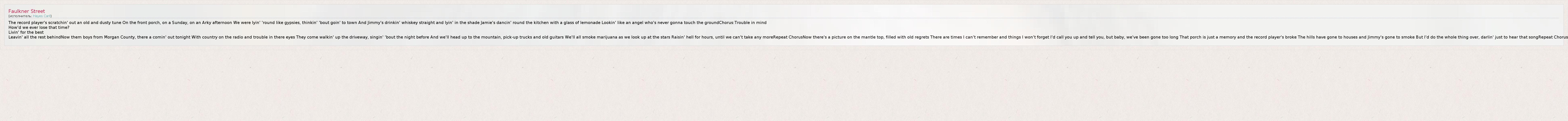 А как ты думаешь, о чем песня "Faulkner Street" ?