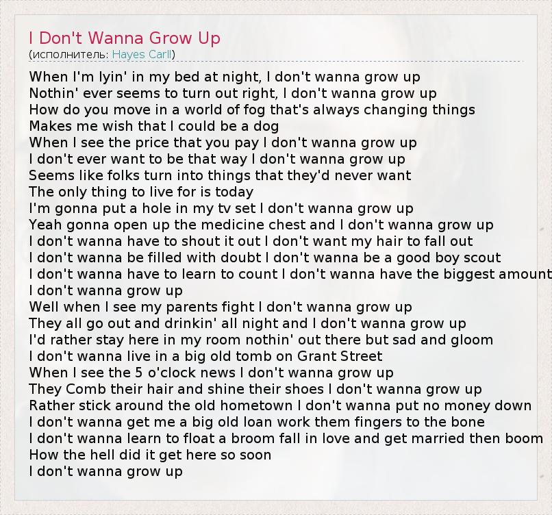 А как ты думаешь, о чем песня "I Don't Wanna Grow Up" ?