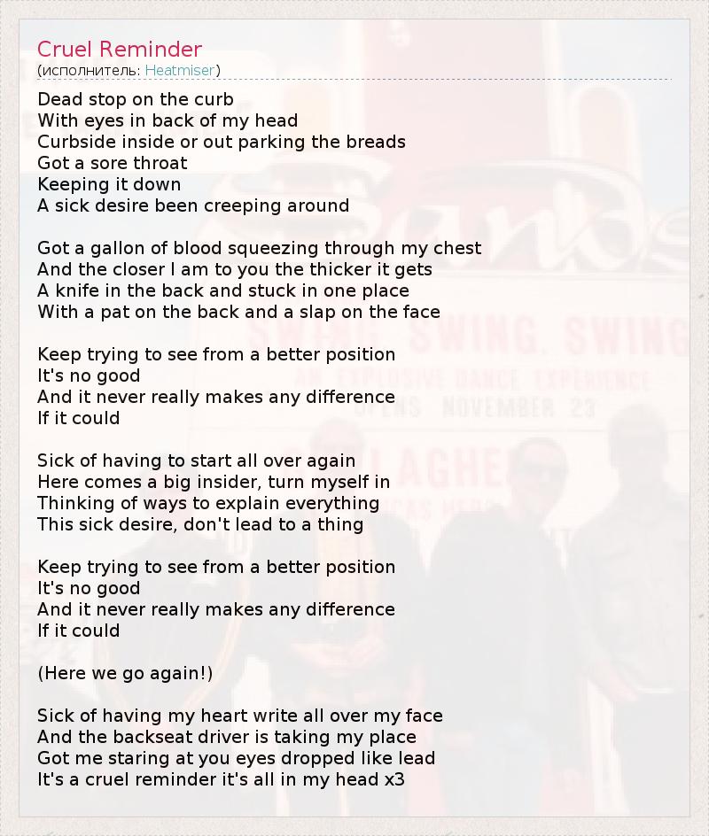 А как ты думаешь, о чем песня "Cruel Reminder" ?