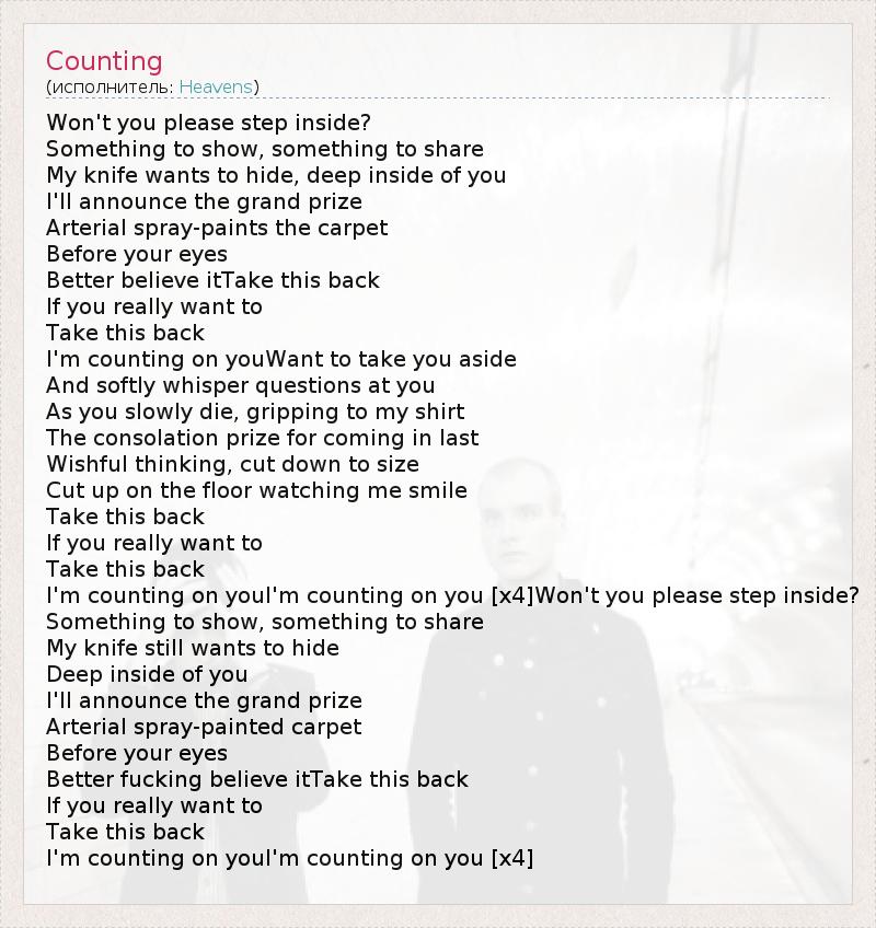 I'm counting on youI'm counting on you [x4]Won't you please step inside?