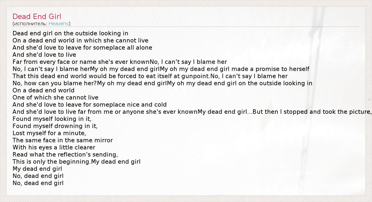А как ты думаешь, о чем песня "Dead End Girl" ?