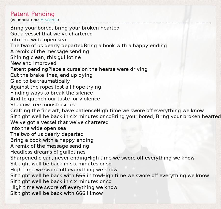 А как ты думаешь, о чем песня "Patent Pending" ?