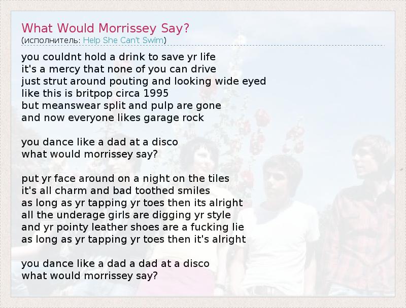 А как ты думаешь, о чем песня "What Would Morrissey Say?" ?