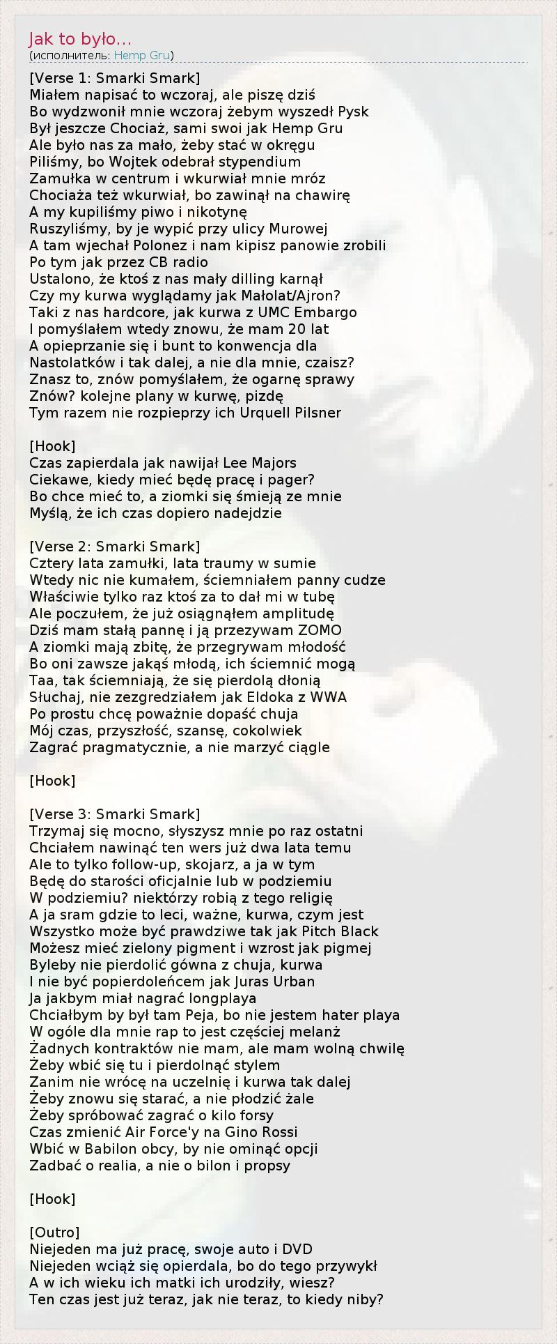 А как ты думаешь, о чем песня "Jak to było..." ?