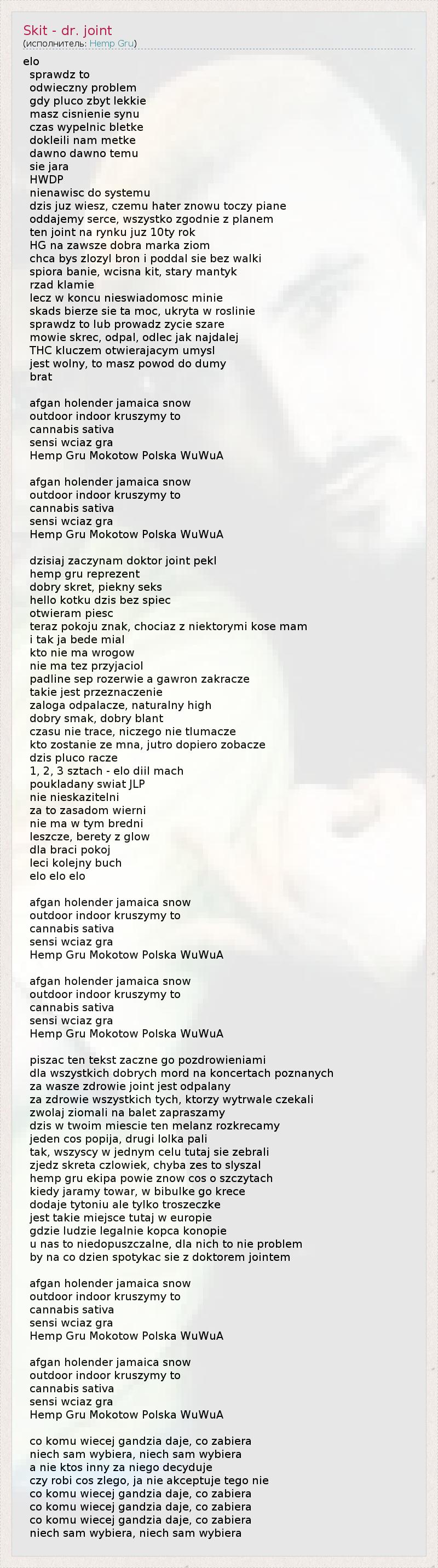 А как ты думаешь, о чем песня "Skit - dr. joint" ?