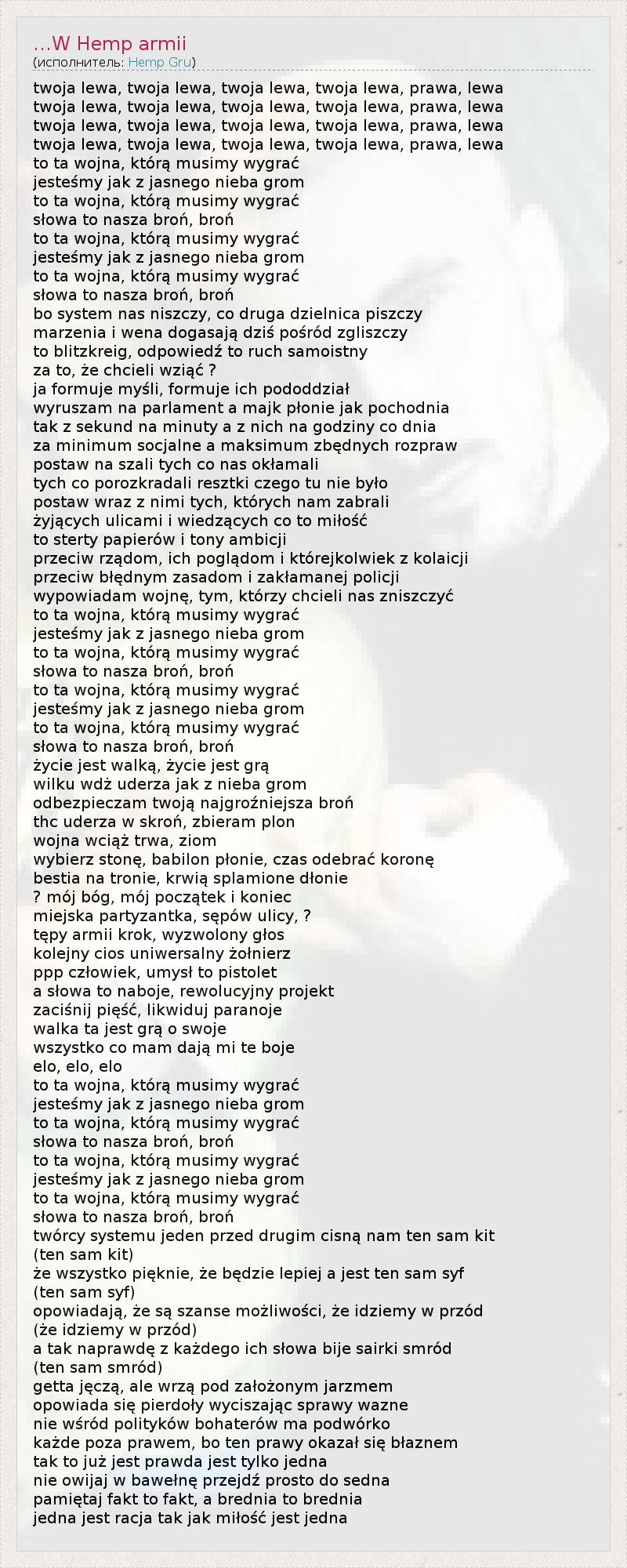 А как ты думаешь, о чем песня "...W Hemp armii" ?