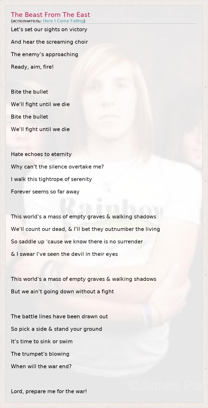 А как ты думаешь, о чем песня "The Beast From The East" ?