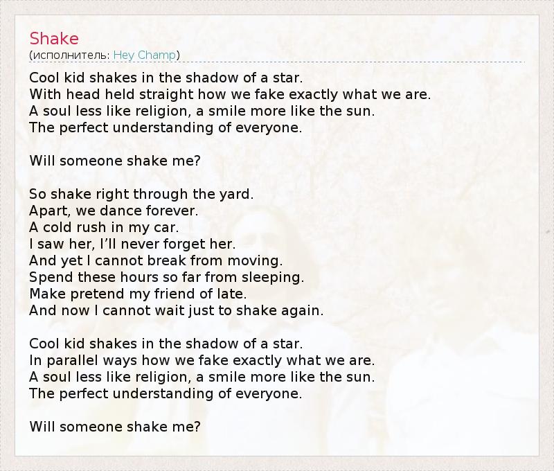 А как ты думаешь, о чем песня "Shake" ?