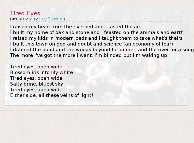 А как ты думаешь, о чем песня "Tired Eyes" ?