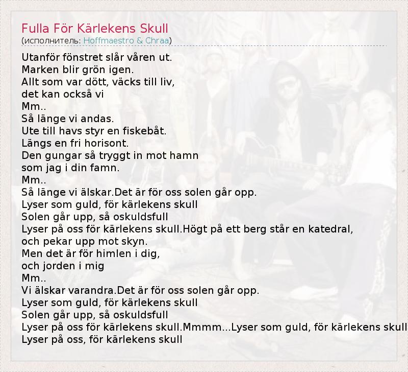 А как ты думаешь, о чем песня "Fulla För Kärlekens Skull" ?