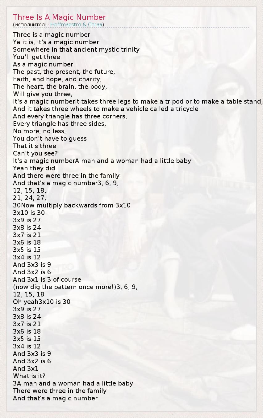 А как ты думаешь, о чем песня "Three Is A Magic Number" ?