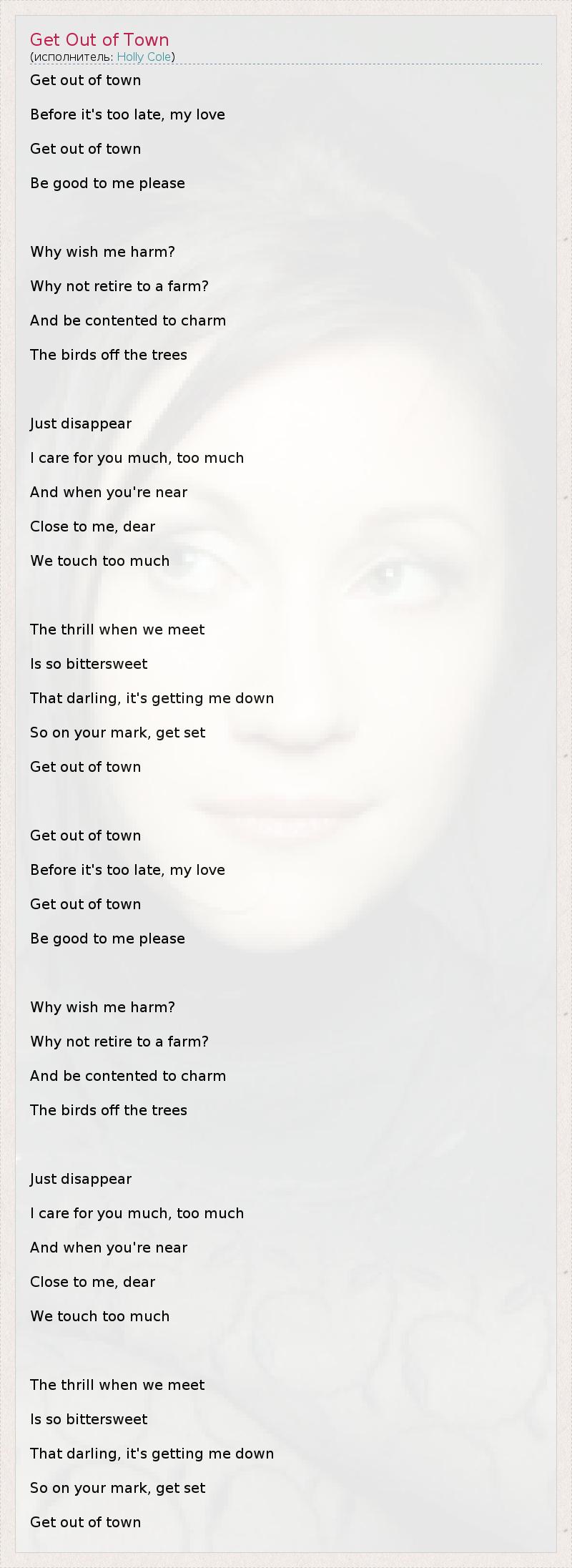 А как ты думаешь, о чем песня "Get Out of Town" ?