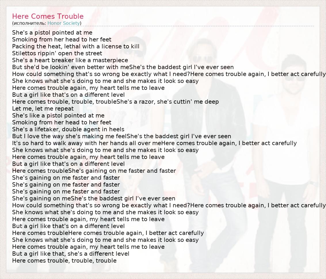 А как ты думаешь, о чем песня "Here Comes Trouble" ?