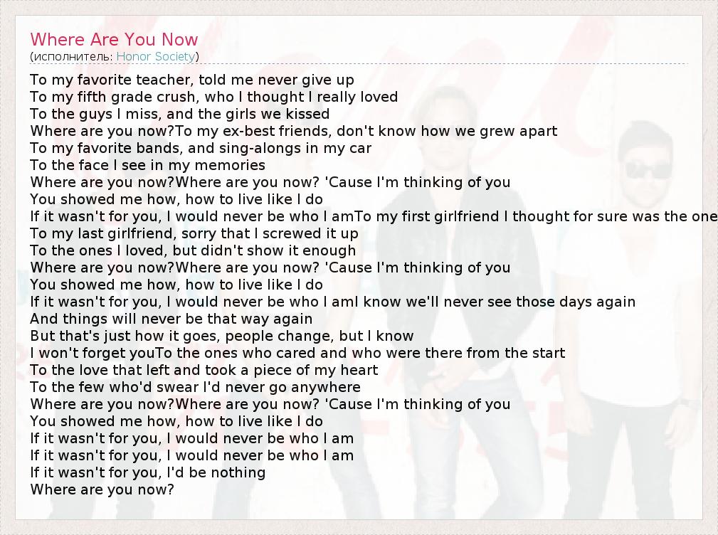А как ты думаешь, о чем песня "Where Are You Now" ?