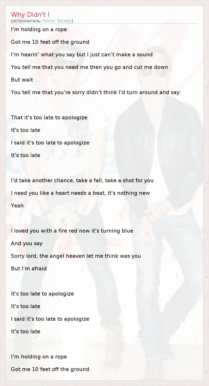 А как ты думаешь, о чем песня "Why Didn't I" ?