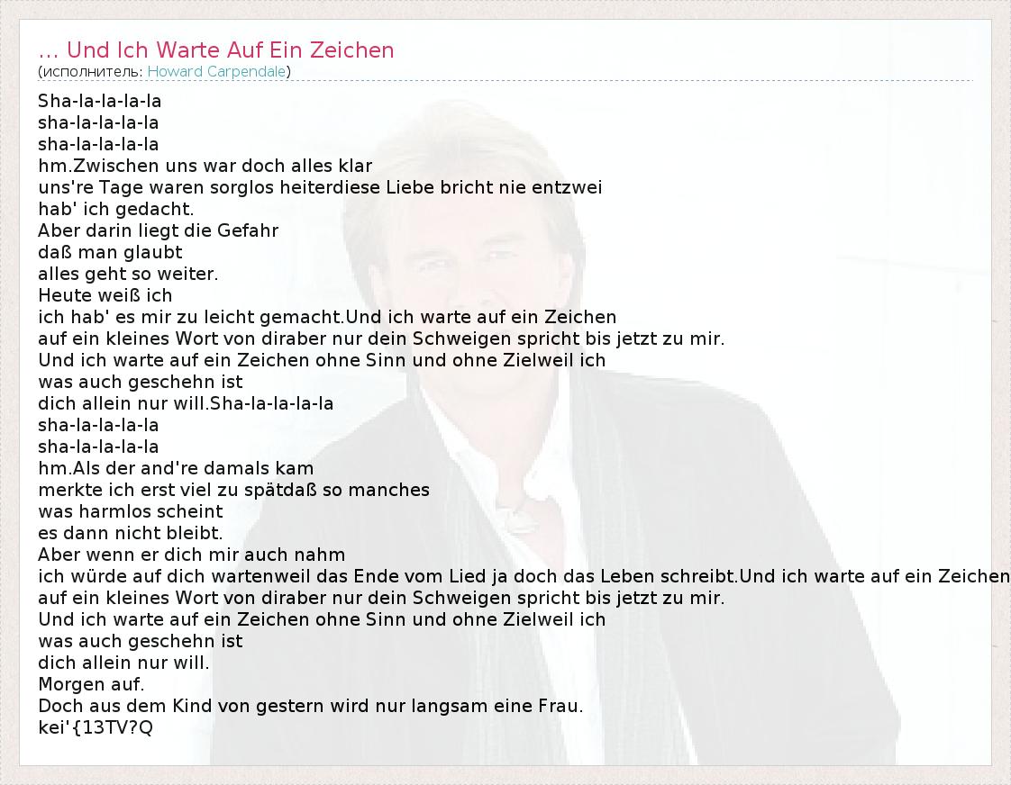 ich würde auf dich wartenweil das Ende vom Lied ja doch das Leben schreibt.Und ich warte auf ein Zeichen