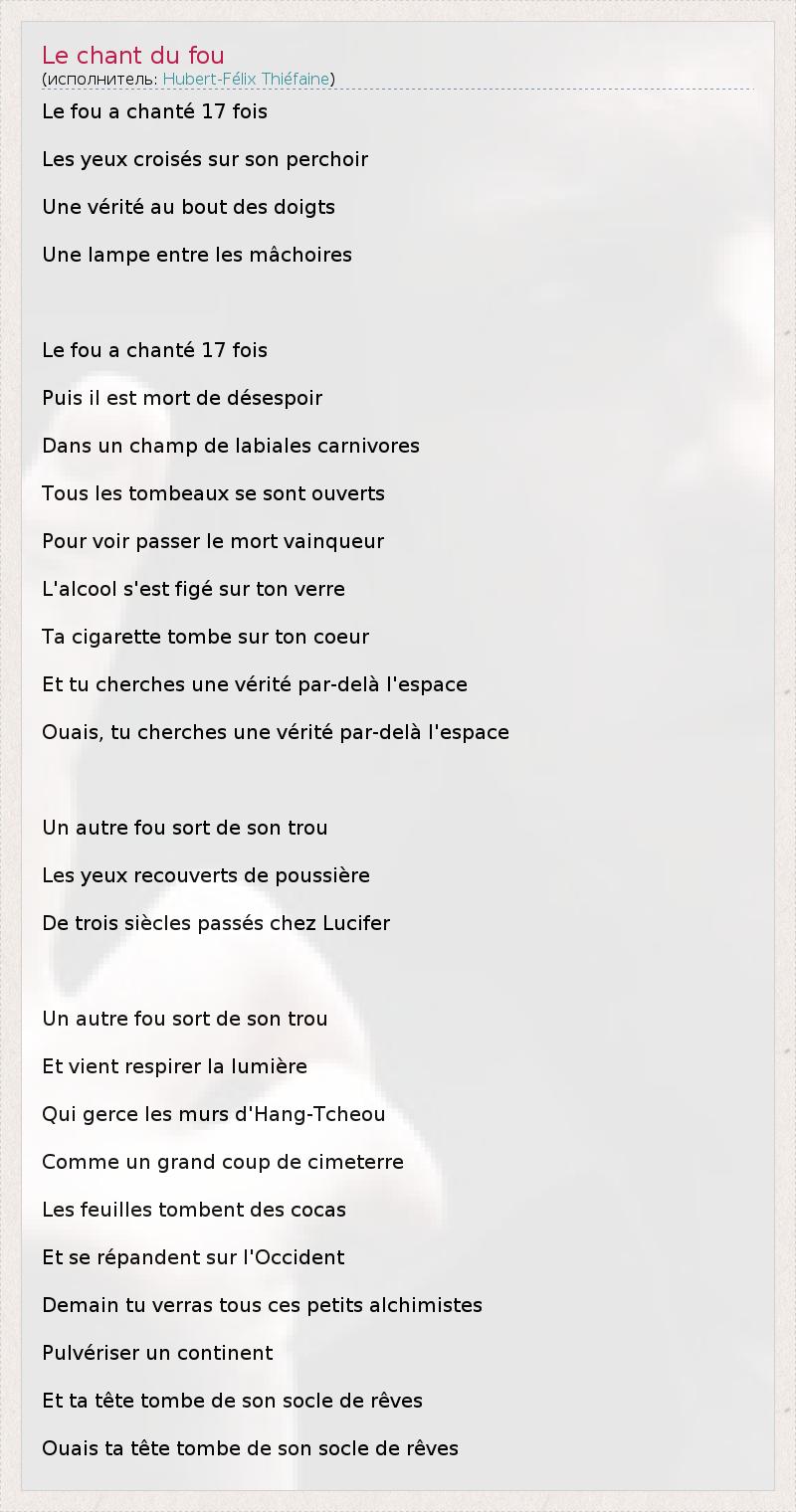 А как ты думаешь, о чем песня "Le chant du fou" ?