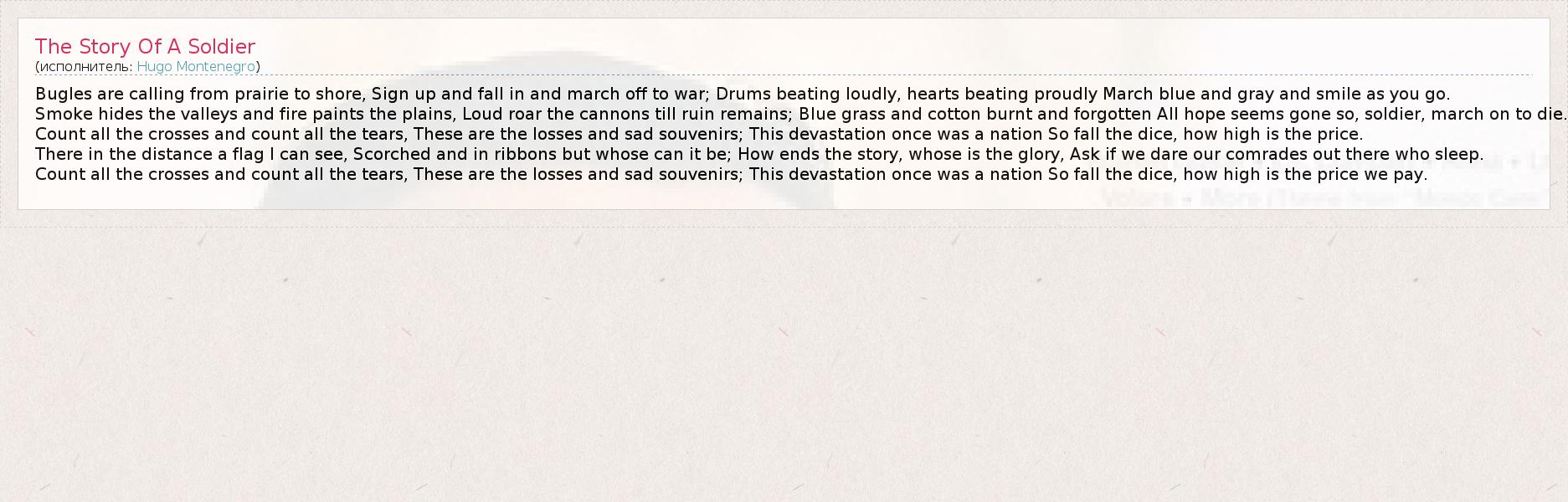 А как ты думаешь, о чем песня "The Story Of A Soldier" ?