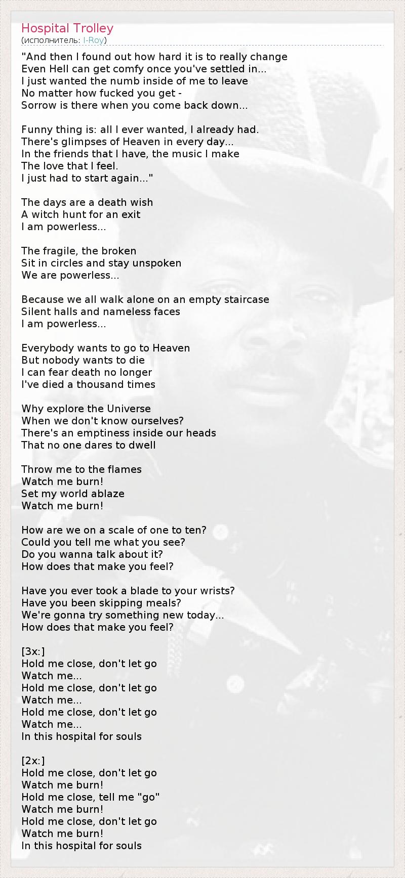 А как ты думаешь, о чем песня "Hospital Trolley" ?
