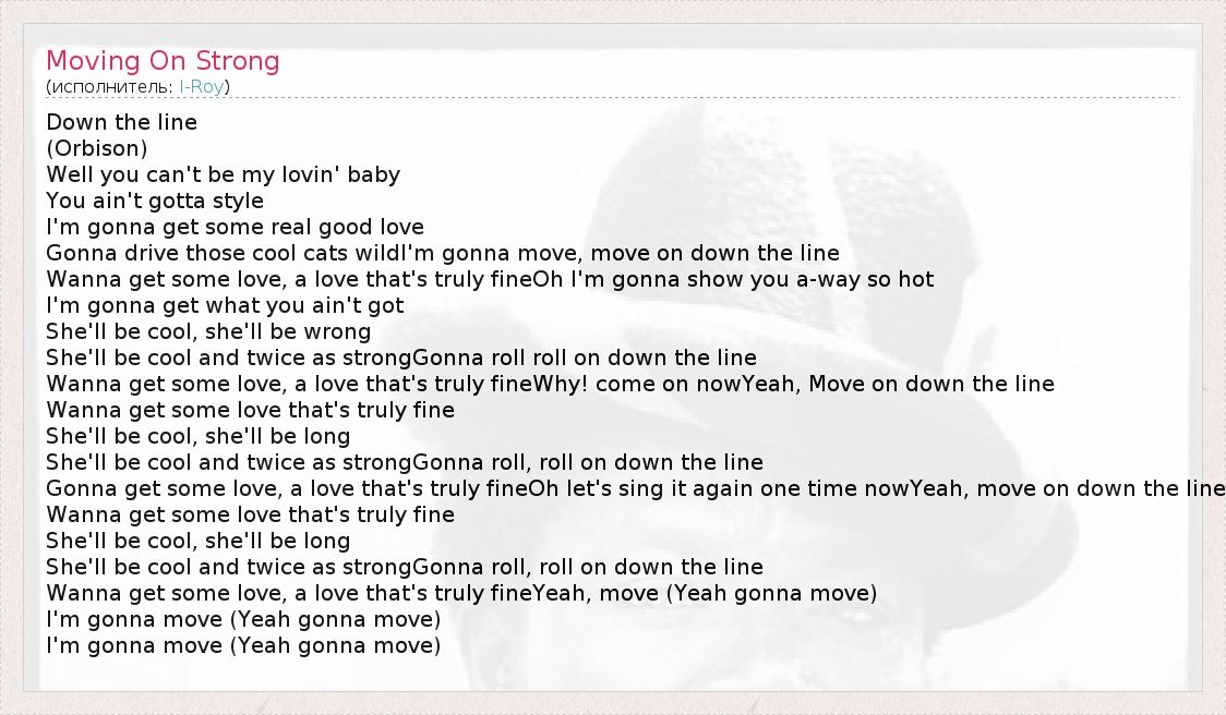 А как ты думаешь, о чем песня "Moving On Strong" ?