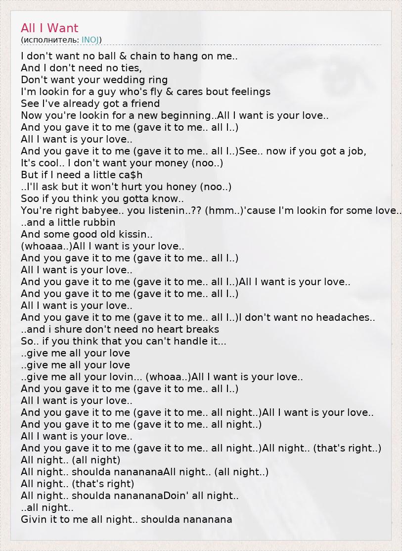 And you gave it to me (gave it to me.. all night..)All I want is your love..