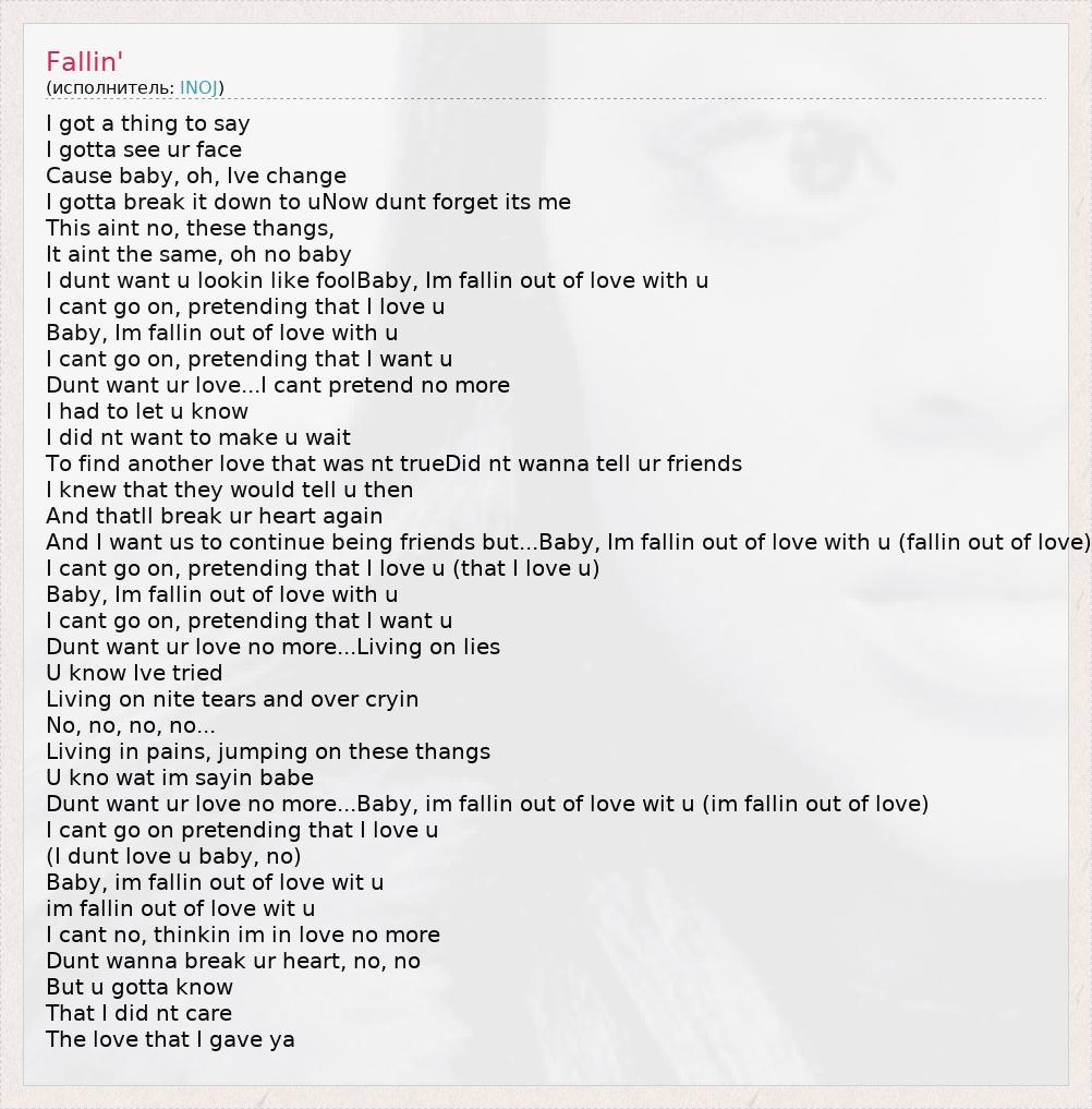 Dunt want ur love no more...Baby, im fallin out of love wit u (im fallin out of love)