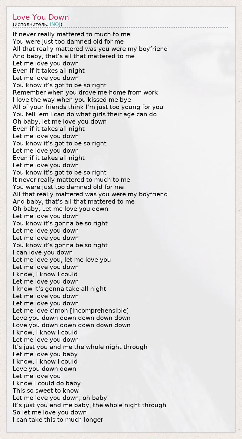 Let me love you down