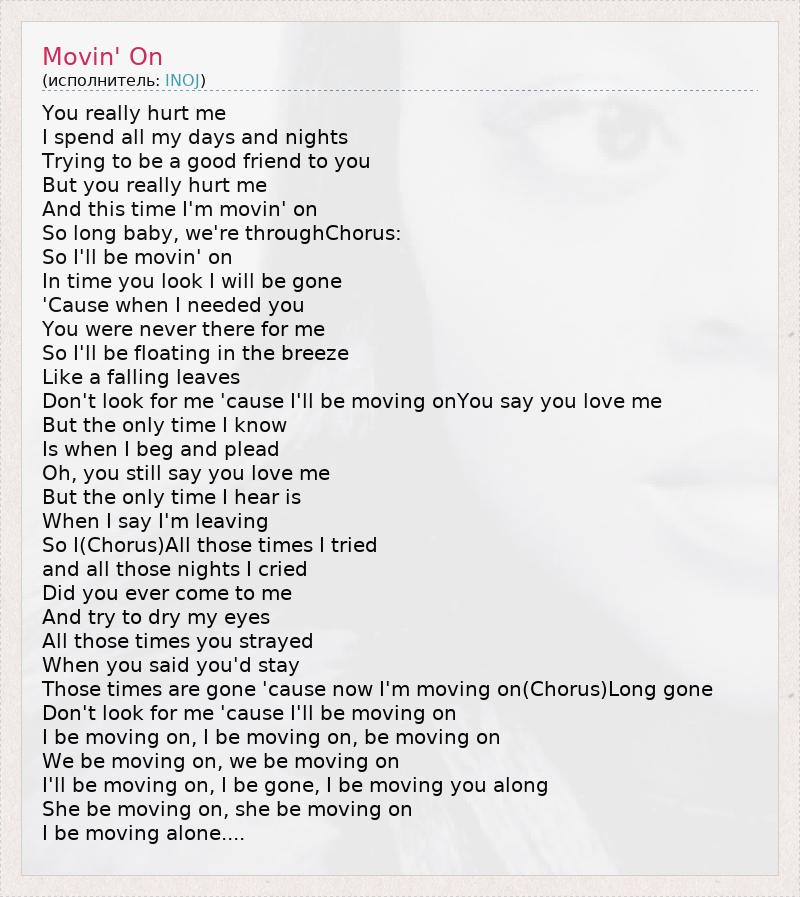 I'll be moving on, I be gone, I be moving you along