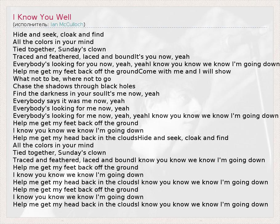 А как ты думаешь, о чем песня "I Know You Well" ?