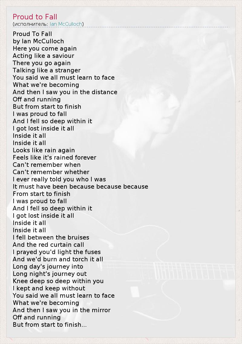 А как ты думаешь, о чем песня "Proud to Fall" ?