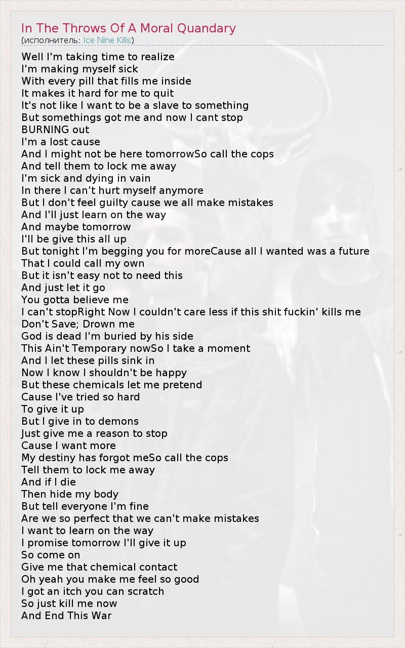 А как ты думаешь, о чем песня "In The Throws Of A Moral Quandary" ?