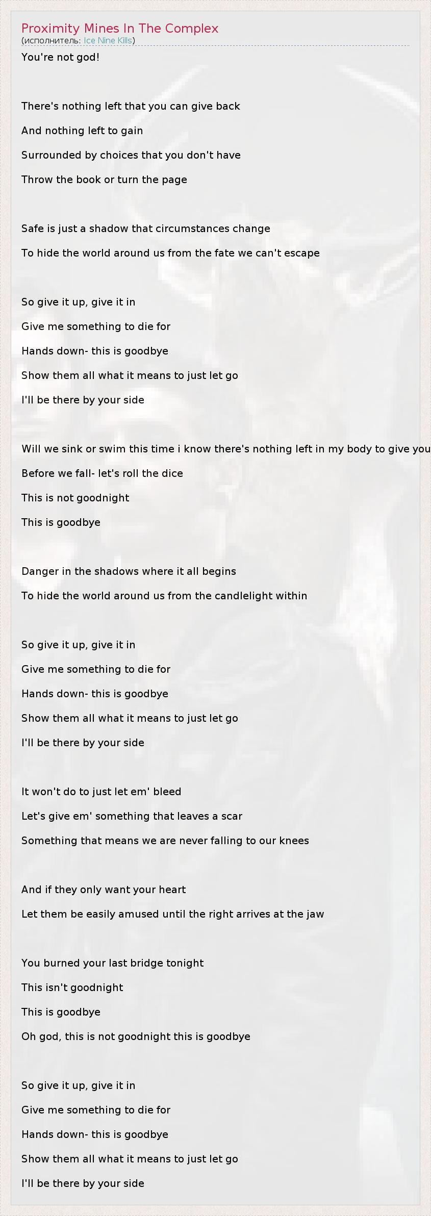 ГлавнаяИсполнителиIce Nine KillsProximity Mines In The Complex