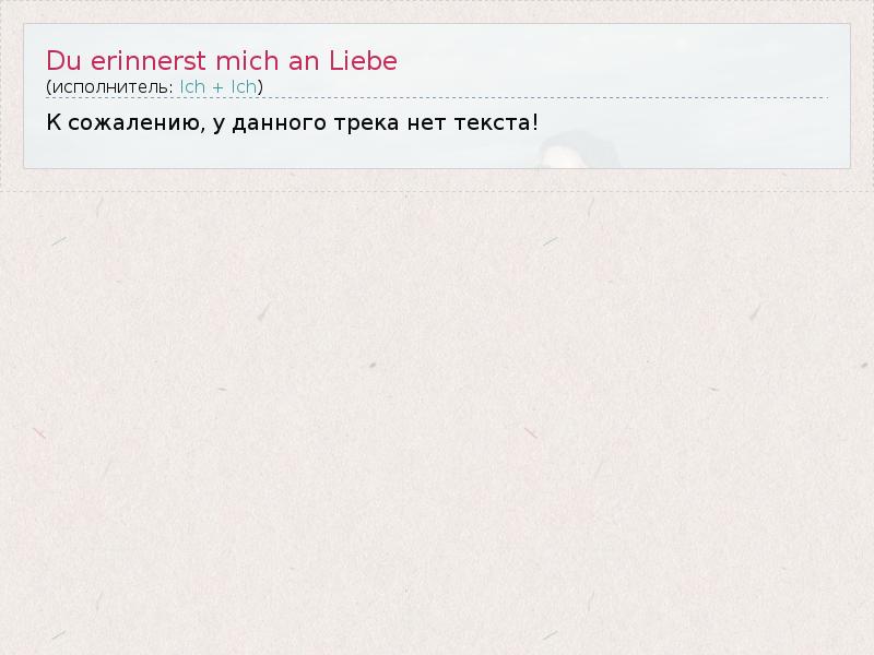 ГлавнаяИсполнителиIch + IchDu erinnerst mich an Liebe