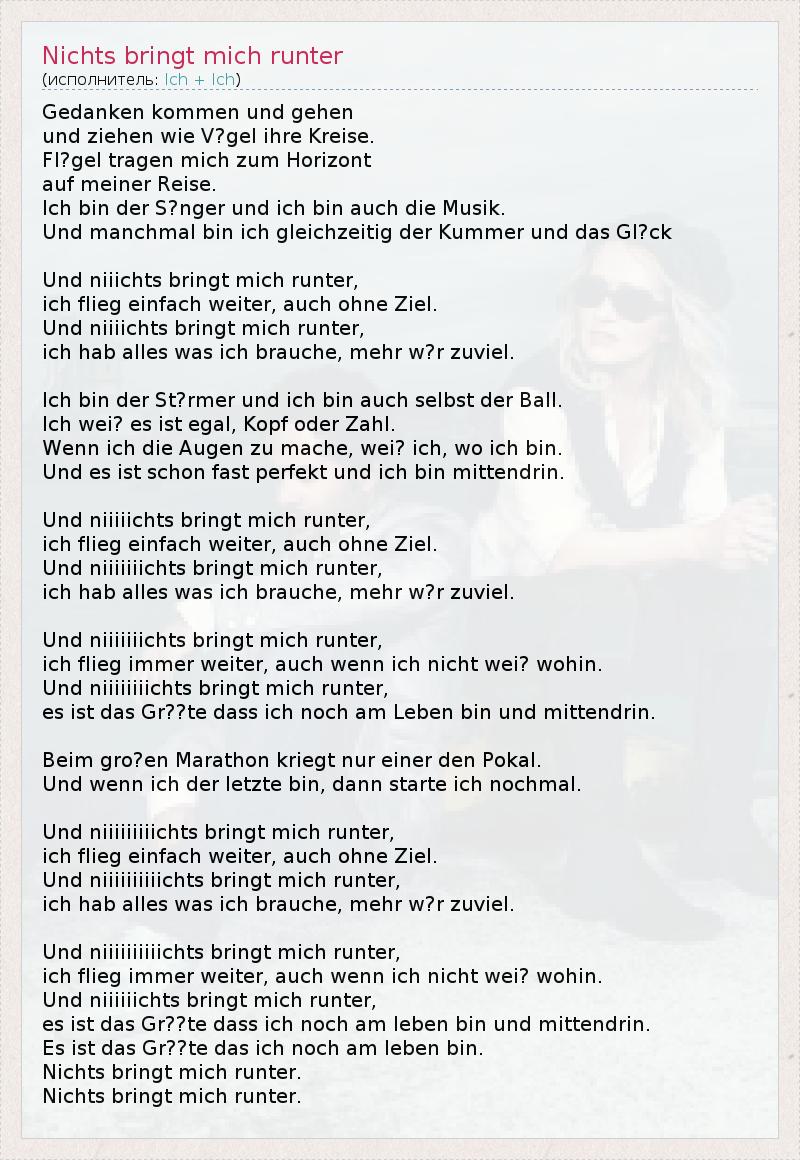 А как ты думаешь, о чем песня "Nichts bringt mich runter" ?