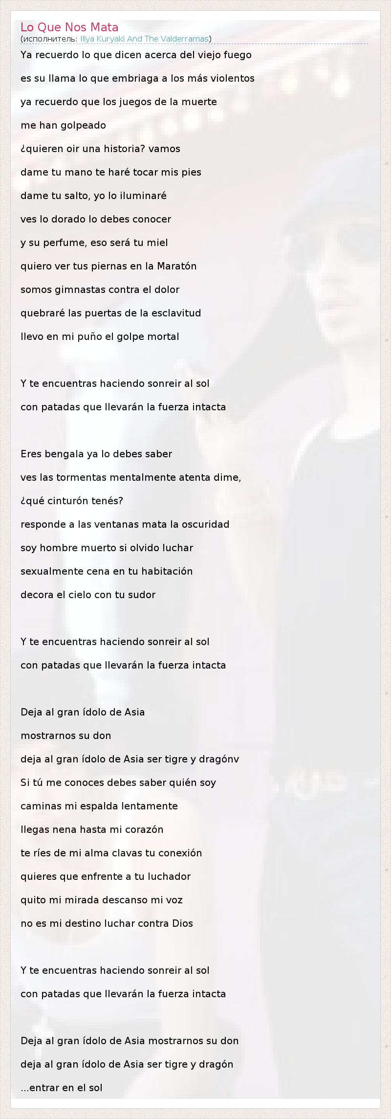 А как ты думаешь, о чем песня "Lo Que Nos Mata" ?