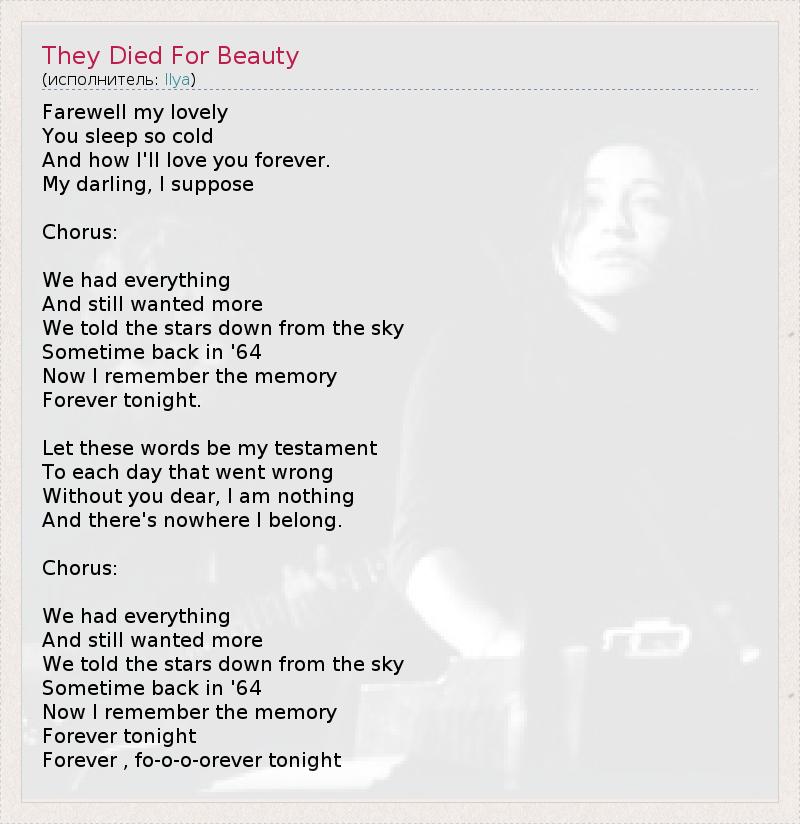 А как ты думаешь, о чем песня "They Died For Beauty" ?