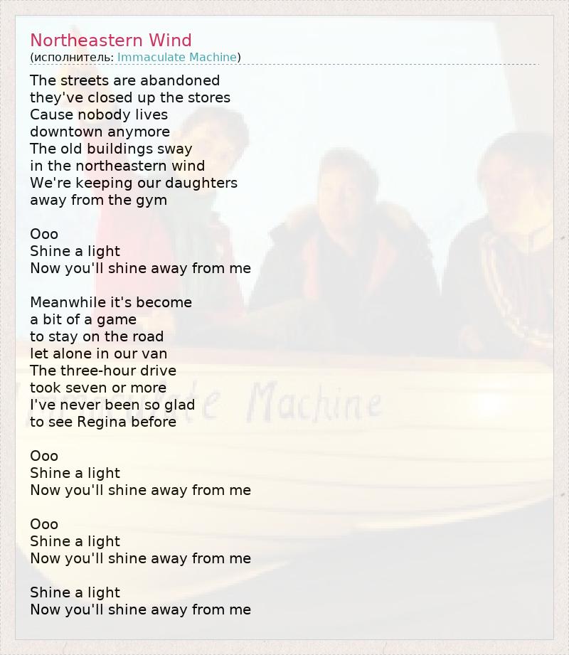 А как ты думаешь, о чем песня "Northeastern Wind" ?