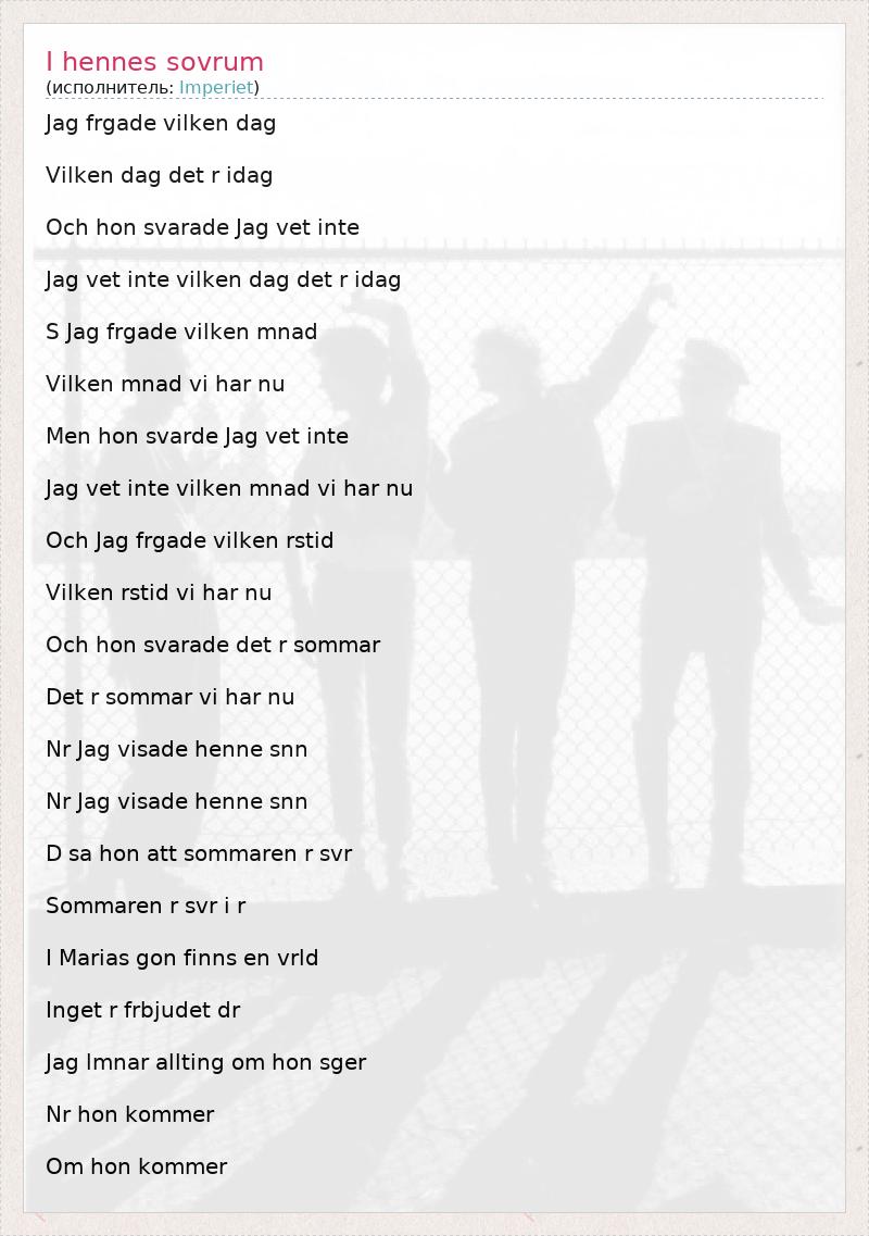 А как ты думаешь, о чем песня "I hennes sovrum" ?