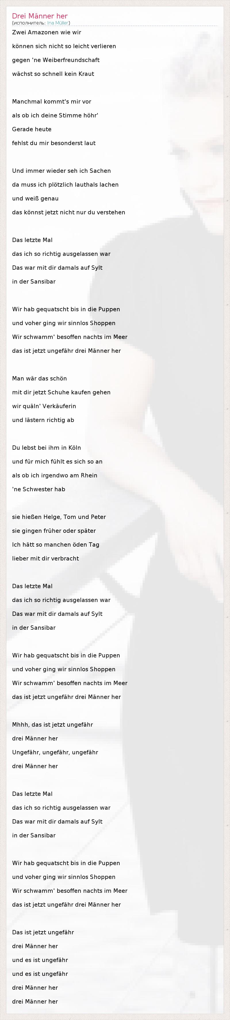 А как ты думаешь, о чем песня "Drei Männer her" ?