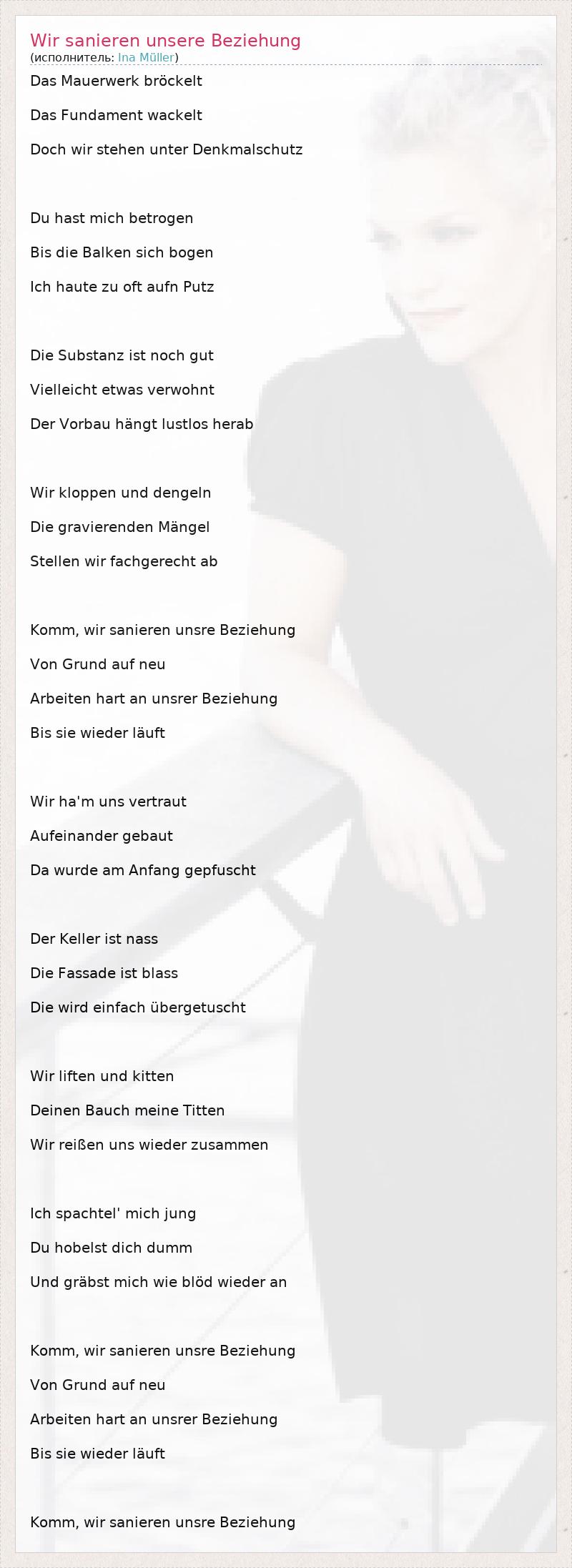 ГлавнаяИсполнителиIna MüllerWir sanieren unsere Beziehung