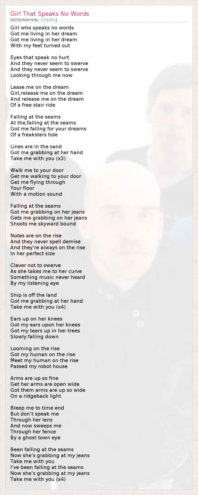А как ты думаешь, о чем песня "Girl That Speaks No Words" ?