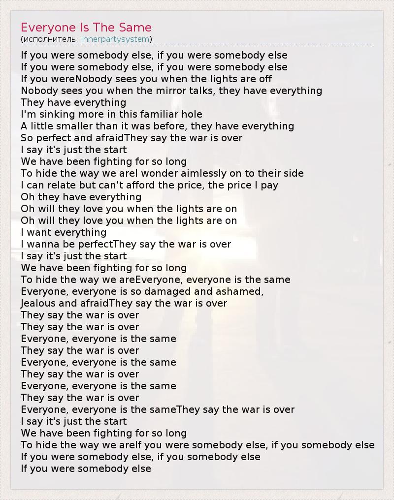 А как ты думаешь, о чем песня "Everyone Is The Same" ?