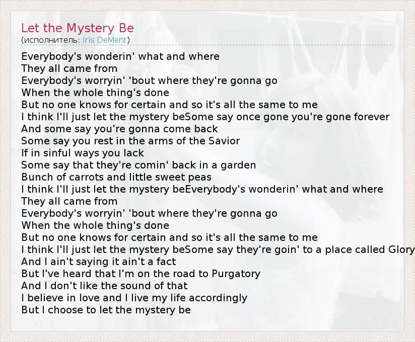 А как ты думаешь, о чем песня "Let the Mystery Be" ?