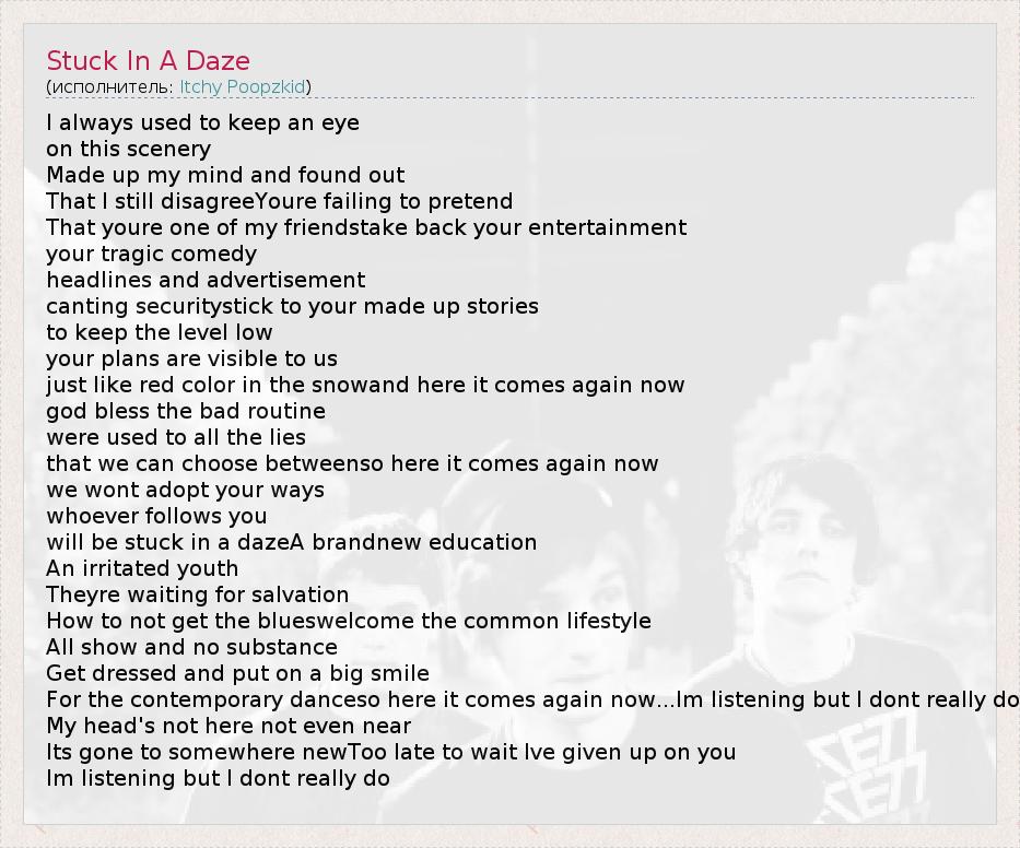 А как ты думаешь, о чем песня "Stuck In A Daze" ?