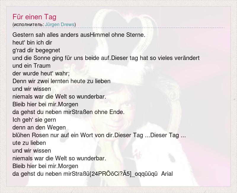 А как ты думаешь, о чем песня "Für einen Tag" ?