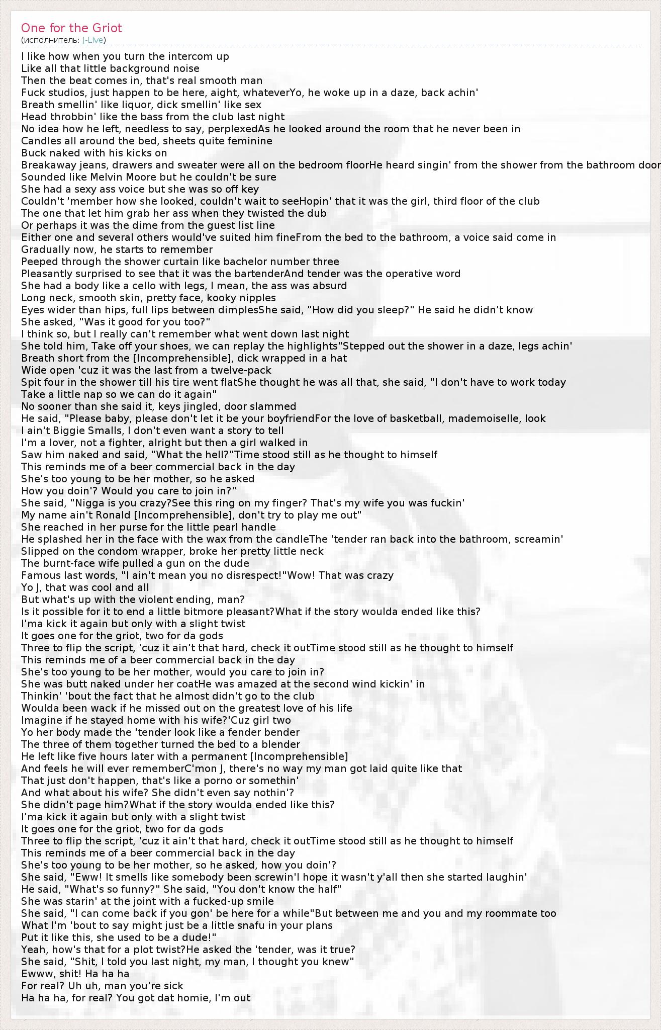 А как ты думаешь, о чем песня "One for the Griot" ?
