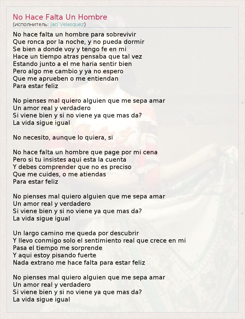 А как ты думаешь, о чем песня "No Hace Falta Un Hombre" ?