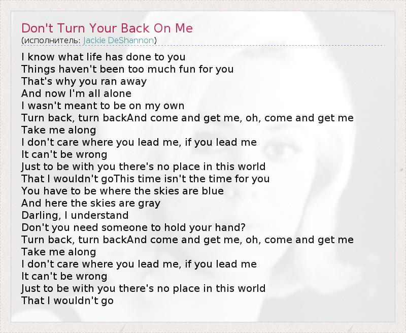 А как ты думаешь, о чем песня "Don't Turn Your Back On Me" ?