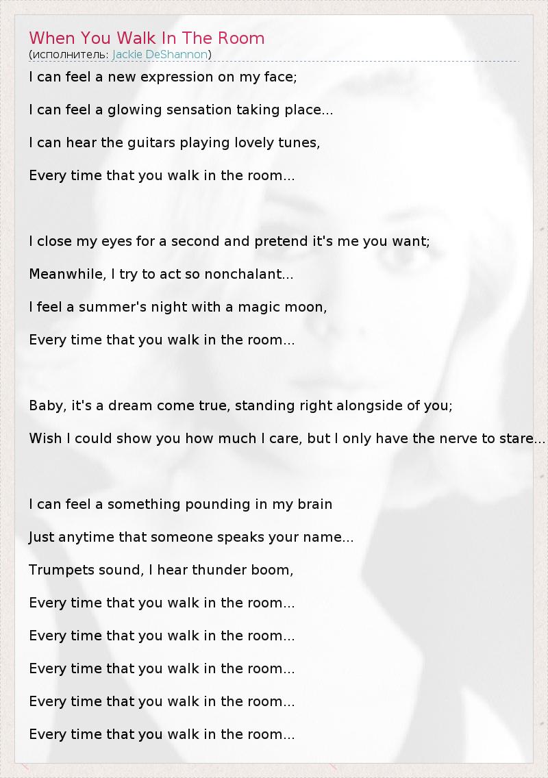 А как ты думаешь, о чем песня "When You Walk In The Room" ?