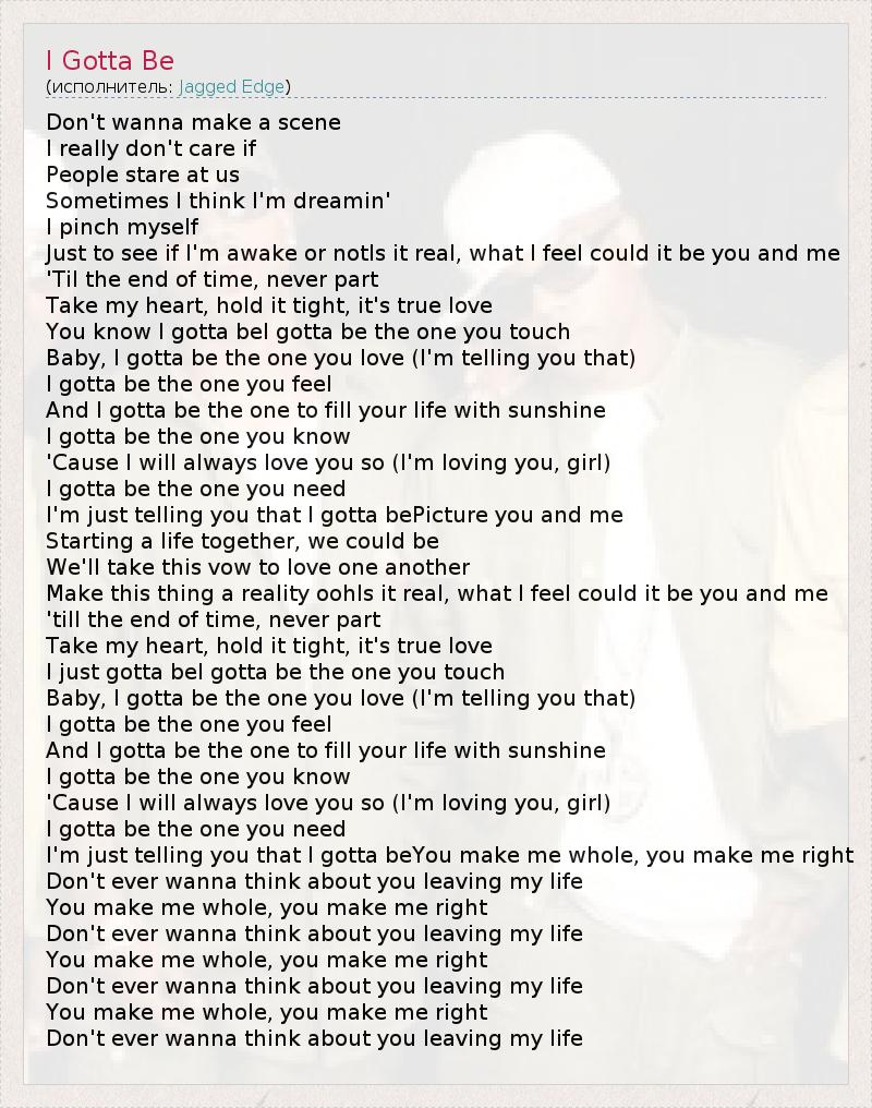 А как ты думаешь, о чем песня "I Gotta Be" ?